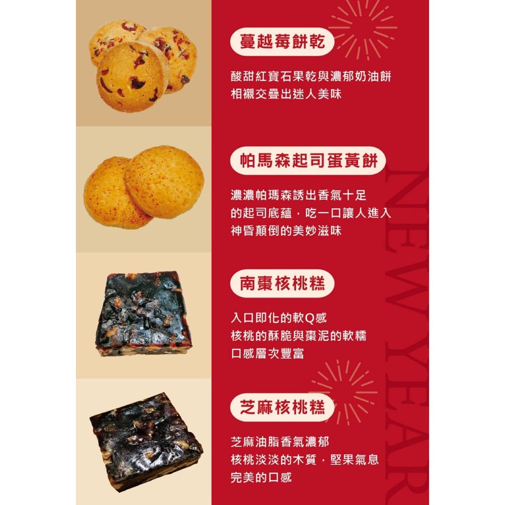 南棗核桃糕、芝麻核桃糕、法式堅果牛軋糖、法式雪花餅七款綜合。